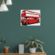 A red double decker bus out on the street. This design looks really effective on this Poster