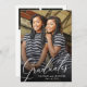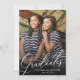 Modern Double Graduates Graduation Party Invitation. Design features single photo of two graduates on the front, typography script ''Graduates'' in trendy white lettering, names and class of. Personalise further with party details and 2 additional photos, school/college/university details and major on the back.