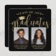 It's a double graduation party! Announce the achievement of two graduates and invite family and friends to celebrate with stylish joint graduation party square photo invitations. All pictures and wording are simple to personalise, and the colours can be customised using the Zazzle design tool. (IMAGE PLACEMENT TIP: An easy way to position a photo exactly how you want is to crop it before uploading to the Zazzle website.) This template is a combination announcement card on the front with the grad party invitation on the back. The modern black and gold design features handwritten style script calligraphy with a mortar board cap, elegant classic typography, and 2 photos of your choice, such as senior pictures or images from the commencement ceremony. Please note that gold is printed colour, not metallic foil. This graduation invitation card is a stylish way to announce a special day celebration for any two grads, such as siblings, best friends, cousins, twins, brother and sister, etc. Congratulations to both of the graduates!