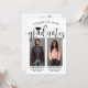 It's a double graduation party! Announce the achievement of two graduates and invite family and friends to celebrate with stylish custom photo joint graduation party invitations. The pictures and wording are simple to personalise, and the colours can be changed using the Zazzle design tool. (IMAGE PLACEMENT TIP: An easy way to position a photo exactly how you want is to crop it before uploading to the Zazzle website.) This template is a combination announcement card on the front with the grad party invitation on the back. The modern black and white design features handwritten style script calligraphy with a mortar board cap, elegant classic typography, and two photos of your choice, such as senior pictures or images from the commencement ceremony. This graduation invitation card is a stylish way to announce a special day celebration for any two grads, such as siblings, best friends, cousins, twins, brother and sister, etc. Congratulations to both of the graduates!