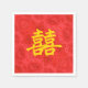 These beautiful and special napkins feature an image of a collage of rich floral red velvety rose blossoms in various hues of red. In the centre of design written in golden yellow colour is the Chinese character for double happiness which is a symbol most often associated with weddings. The colours are rich and dreamy. They are the perfect napkins to complement a very special Chinese engagement or wedding. To add your names or initials, simply move the "double happiness" up or down with the arrows to customise and recenter if desired.