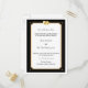 This elegant wedding invitation is fully customisable to your needs. The refined choice of black and gold perfectly offset the formal setting of this important event. Complete with double gold hearts at the top and tiny gold hearts at each corner nothing says "I love you." better than this.