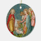 You have several options here: 1) Leave the ornament as is with the same image on both sides. 2) Hide or delete the featured image on the back to reveal our suggested text which quotes the last two lines of the first stanza of that much-beloved late nineteenth-century carol Away in a Manger. Our text may, of course, be replaced with a greeting, a Biblical passage, or any other text of your choosing. 3) Delete or hide both the featured image and the suggested text to reveal a solid colored field ready to receive your own design. To choose a new background color, see the suggested coordinating hues on the Color Palette postcard for this image. + Image Credit (VVP 003): Antique image of the Third Joyful Mystery: The Nativity of Our Lord from a late 19th-century chromolithographic devotional print originally published by K. van de Vyvere-Petyt, Bruges, Belgium, from the designer’s private collection of religious ephemera. The image is third in a formally unnumbered series of the rosary's original fifteen Mysteries.