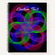 Colourful geometric 3D double circle mesh design notebook with editable text feature.