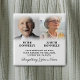 Celebration of life memorial button featuring 2 photos of the people who are being remembered, their names, and a sympathy quote.