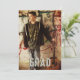 Grunge text, boy's graduation announcement and party invitation. Add a vertical photo to fill the front of 5x7 inch cards. "Grad" text in grunge font has a shadow effect to stand out on either dark or light photo colours. Add a horizontal photo to the back of the card - my sample is black and white, but yours can be colour. It will fill the top portion. Add black, printed text beneath with his name, school info and party information. Also available as an instant download.