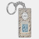 Beachy keen! It's a sandy beach keychain designed to make the QR codes aesthetically pleasing, without losing functionality. The keychain is two-sided, with two separate QR fields, each with its own subtitle for clarity. Link to different websites, like one for payment and another for a resort map; or just input the same link in both QR code fields (both sides of the keychain) for ease of use. There is also a place to input your logo on the front, and another for business information on the back.