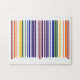 Geometric barcode design features two rainbows made of pairs of coloured stripes that correspond to UPC numbers. Getting my geek on, the numbers correspond to the letters in "rainbow" to make a double rainbow. Since barcodes are only 12 numbers long, I let the "r" be represented by the red start and middle stripes. The sequence starts on the left with red, orange, yellow, green, blue, indigo, and violet. Two stripes of red serve as a divider in the middle and then the colours go from violet back to red for a balanced look.