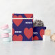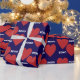 Double red heart and xoxo pattern on blue wrapping paper