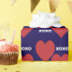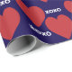 Valentine's day wrapping paper featuring a double red heart and white xoxo (hugs and kisses) pattern blue background. Perfect gift wrap for your boyfriend or girlfriend on Valentine's Day, birthday or anniversary.