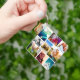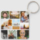 White framed personalised 18 photo collage template rounded corners metal keychain.