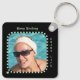 Double sided 2 photos name black green key ring