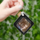Double sided 2 photos name black grey key ring