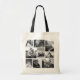 This custom bag tote is a personal gallery with 18 of your favourite black and white rounded photos printed on durable fabric. Perfect for carrying your essentials with a personal touch.