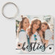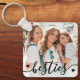Create a custom keepsake with this personalized family or kids photo keychain, now featuring a sweet new design on the front. The layout includes space for one favorite photo with the word “besties” written across the bottom in a flowing script font in black, accented by a few small black heart details. A soft white gradient sits behind the text to help it stand out while keeping the overall look light and clean.