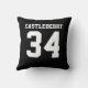 Add a name and number(s) to personalise this custom double-sided black and white sports jersey inspired accent pillow. It is an excellent gift for a sports fan or athlete. The options to change the colour and font sizes are available.