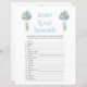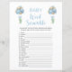 Double Sided Blue Balloons Baby Shower Game Card