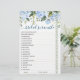 DOUBLE SIDED Blue Hydrangea Bridal Shower Game