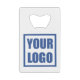 Promote your business everywhere you go with this white custom business logo template credit card bottle opener.