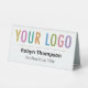 Easily personalise our tall double sided desk name plate with your company logo, name, job title, or other custom text. Designed in white and other colours (all colours are customisable). The dimensions are 6 inch x 3 inch. No minimum order quantity and no setup fee.