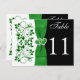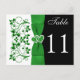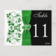 This romantic black and white and emerald green white floral double-sided table number post card has a PRINTED satin look ribbon and bow with a pair of PRINTED diamond jewel and FAUX glitter joined hearts on it that matches the St. Patrick's Day wedding invitation shown below. You must customise the card for EACH table number that you need, by changing the "11" to each number you need, adding it to your cart, and then repeating the process until you have the correct number of individual cards in your cart. If you have any questions, email niteowlstudio@gmail.com.