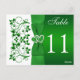 This romantic emerald green and white floral double-sided table number post card has a PRINTED satin look ribbon and bow with a pair of PRINTED diamond jewel and FAUX glitter joined hearts on it that matches the St. Patrick's Day wedding invitation shown below. You must customise the card for EACH table number that you need, by changing the "11" to each number you need, adding it to your cart, and then repeating the process until you have the correct number of individual cards in your cart. If you have any questions, email niteowlstudio@gmail.com.