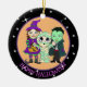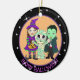 Double Sided Halloween Kids in vampire, mummy and witch costumes and Bats trick or treating Keepsake Ceramic Ornament