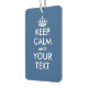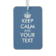 Custom keep calm and your text car air freshener. navy blue or custom colour. Create your own funny keep calm and carry on parody design. Vintage keepcalm typography template with crown. Humourous examples: Keep calm and party on. Keep calm and sparkle on. Keep calm and drink coffee. Refresh your vehicle with different cool auto scents to mask dog / pet smell and other dirty stinky odours. Unique novelty gift idea for men and women. Design your own for dad, mum, mother, father, uncle, grandpa, brother, son, sister, wife etc. Custom air refreshener with customisable keepcalmandcarryon text. Make it smell like a fresh new car, black ice or the sea. Double sided design. Make your own slogan, spoof or saying.