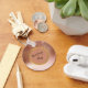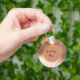 Carry your brand's glamour with you everywhere with this sophisticated and stylish custom keychain! This round keyring is designed with a high-end rose gold metallic foil background that beautifully catches the light, layered with shimmering rose gold glitter confetti for a luxurious, textured look. You can easily upload your own logo or personalise the space with your brand name or custom text (e.g., "Your Logo Here" in black script). the back is for your own QR code and company name.