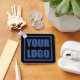 Fully customisable logo template double sided printed metal keychain on black.