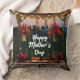 This image serves as a concept for one side of a double-sided throw pillow, depicting a vibrant bohemian rustic event at dusk with fairy lights, florals, and a 'Happy Mother's Day' message.