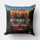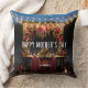 Concept for the front of a double-sided pillow: a beautifully lit bohemian rustic event scene at dusk with fairy lights, vibrant florals, vintage accents, and a central 'Happy Mother's Day' greeting.