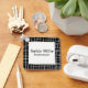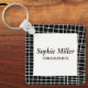 This is a simple black and white striped business QR code key ring. Customizable name, title, your details, and QR code.