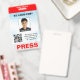 Double Sided Red Light Grey Photo & QR Code Press ID Badge