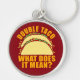 "Double Taco: What Does it Mean?" round metal key chain