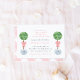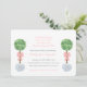 Handpainted topiary ball in a ginger jar planter adorned with floppy pink bow for this classic baby shower invitation design.