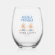 Double Trouble Twin Boys Baby Shower Stemless Wine Glass