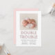 Bring on the Double Trouble with your new little ones! This Birth Announcement features one image and all of your 2 little babies details. Also available in our store in a variety of different colours!