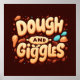 A whimsical and playful design featuring the text "Dough and Giggles" in a cartoonish font with bright, playful colours. The overall composition is lighthearted and inviting, evoking a sense of joy and laughter.