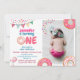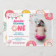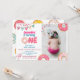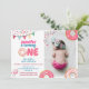 This sweet birthday invitation Sweet One personalised with you photo features my hand drawn doughnuts in bright colours with sprinkle confetti.