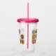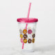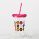 Plastic tumbler design features an original illustration of a dozen delicious breakfast doughnuts.
