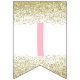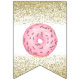 Doughnut Gold Sprinkles Happy Birthday Banner featuring watercolor illustration of a pink doughnut with gold sprinkles. Part of a collection.