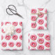 Sweeten your gift-giving with this adorable set of three wrapping papers featuring heart-shaped doughnuts with pink glaze.