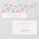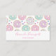 Business cards with a deliciously fun pattern. Illustration of pastel pink and green doughnuts with sprinkles and icing.