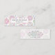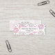 Mini business card with a deliciously fun pattern. Illustration of pastel pink and green doughnuts with sprinkles and icing.