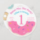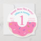 Cute doughnut party invitations for a doughnut themed first birthday party (or any doughnut party - just personalise the text to make the invitations custom for your event). Featuring pink icing with sprinkles and "DONUT wanna miss this party!" design. Back has a cute sprinkle pattern of doughnuts. For more fun doughnut party decoration ideas see our Doughnut Party Collection.