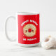 The coffee mug design saying "Doughnut Worry, Be Happy" has a red background in it. It is microwave and dishwasher safe. It makes it ideal for either coffee or tea in the mornings.