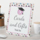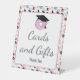 From classic frosted designs to colourful sprinkle-topped treats pattern. The playful pattern blends whimsy with a pink glazed doughnut wearing a graduation cap as the main image on the front of the sign.