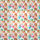 Cute and fun illustrated pattern featuring chocolate frosting doughnuts with sprinkles, mint chocolate chip ice cream cones, chocolate ice cream sundaes, neapolitan ice cream sundaes, strawberry cheesecakes, strawberries, blueberries, bright pink macarons with yellow filling, and tiny hearts in this pattern. A whimsical design for any material.