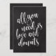 An elegant cutting edge wedding sign, features the text "All you need is love and doughnuts" in a extroverted script font, the brush texture adds a spontaneous and playful feeling. The background colour can personalised according to your needs and preferences, please contact me if you have any special request.